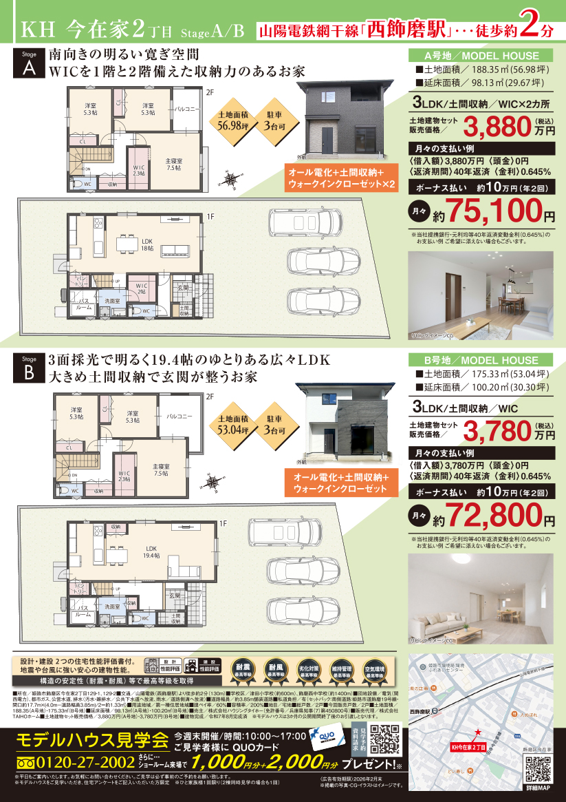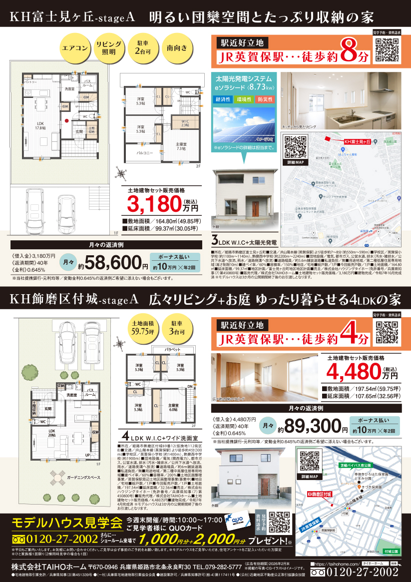 今週のチラシ【KH富士見ヶ丘-A/KH飾磨区付城-A】【KH今在家2丁目-A/B】モデルハウス公開中!