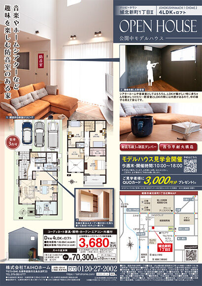 今週のチラシ【城北新町1丁目Ⅱ-D号地】防音室のあるお家 モデルハウス公開中!