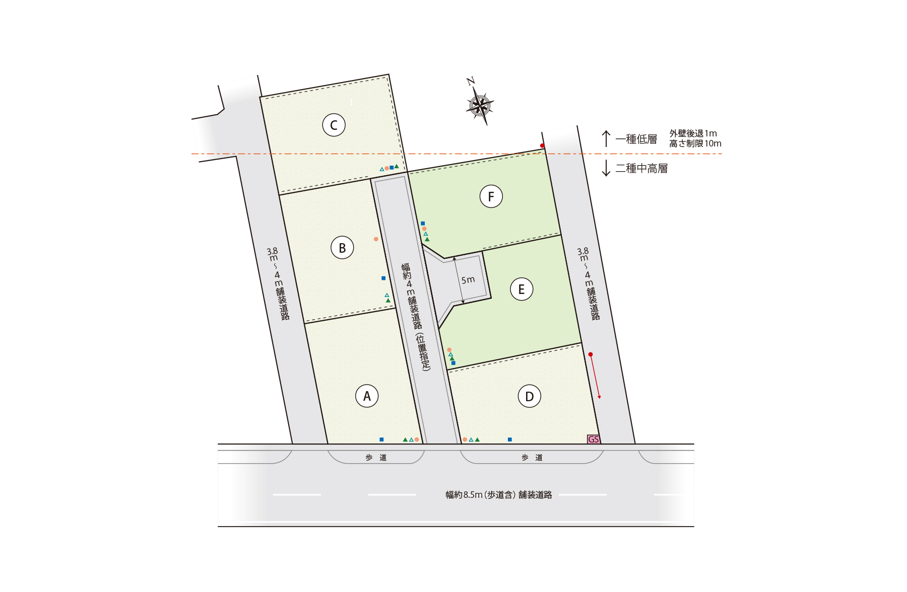 | [前面道路] | 約4m~8.5m舗装道路 |