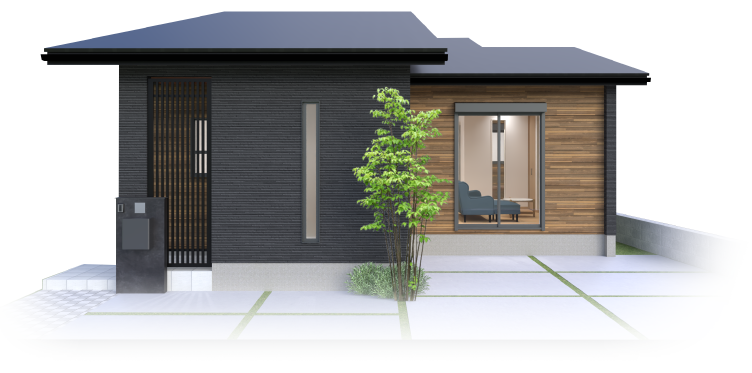 「スタイリッシュな外観デザイン」黒のサイディングに木目のアクセントが映える、重厚感ある佇まい。