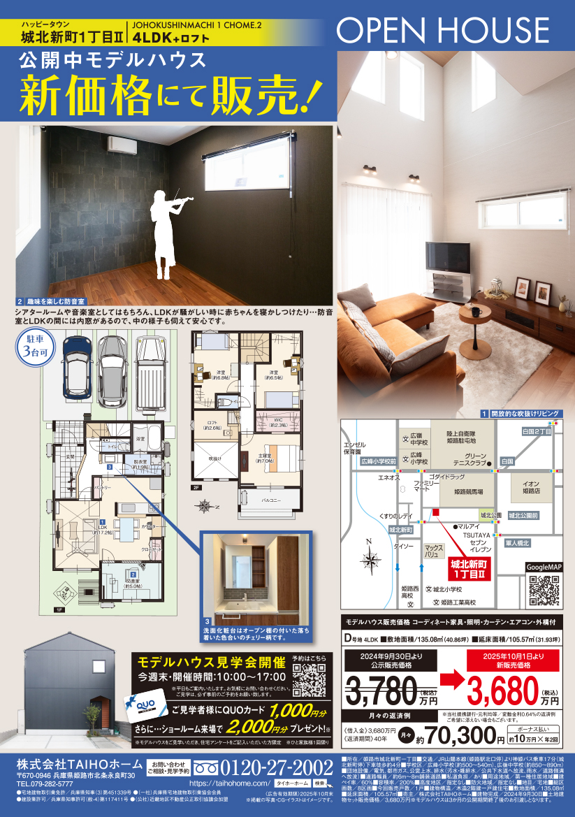 今週のチラシ 「辻井7丁目Ⅱ-A/B号地」「城北新町1丁目Ⅱ-D号地」モデルハウス好評公開中