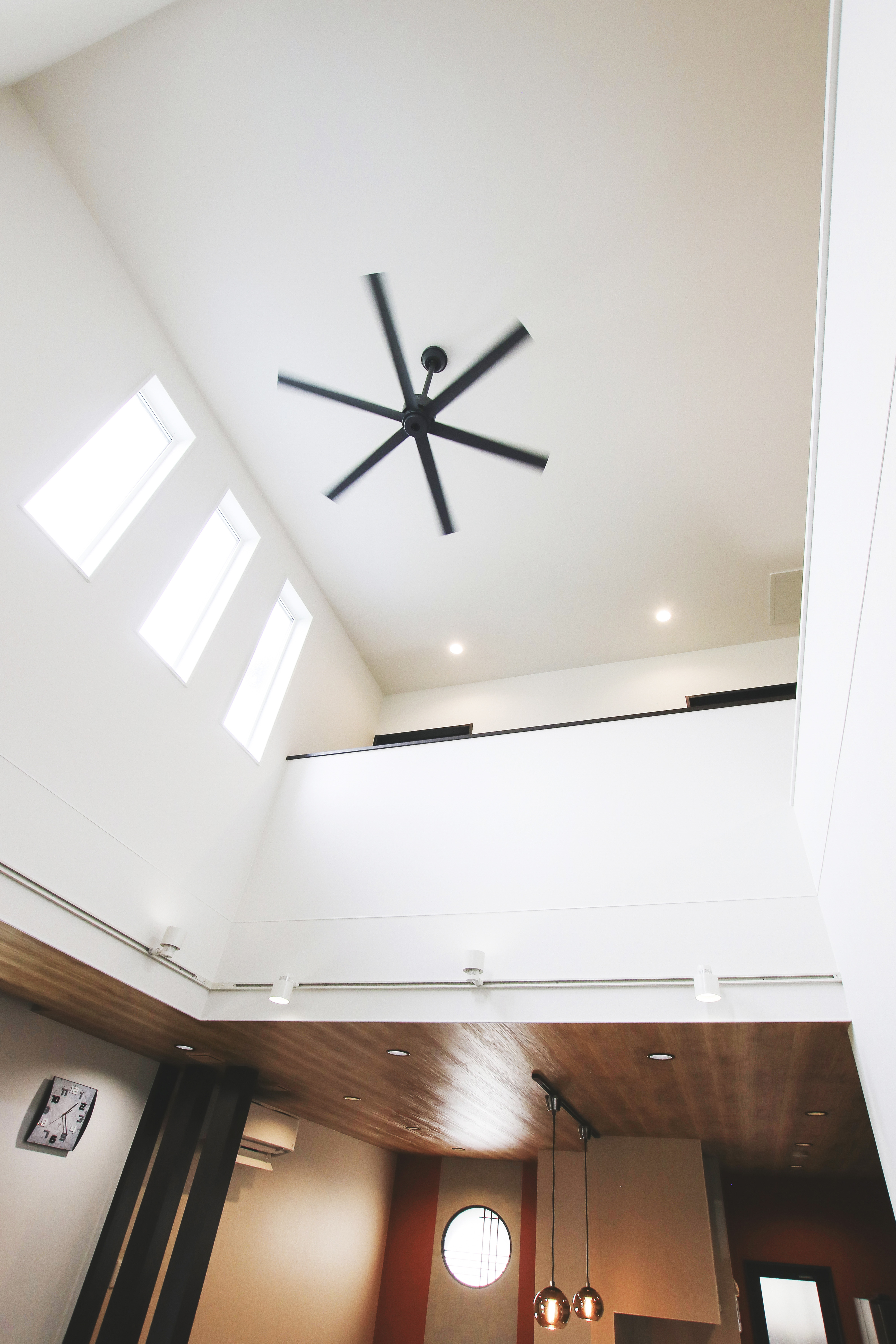 「こだわったポイントはリビングへ入る時の景観で、吹抜けのあるリビングから堀座卓のある和モダンダイニングの内観を臨む所です。